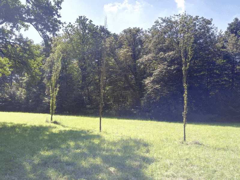 Wie auf dem Bild auch ohne messtechnische Geräte zu sehen, unterliegt der Baum in der Mitte voll diesen Einflüssen und der Baum rechts davon noch zu gewissen Teilen. Hingegen ist der Baum ganz links, frei von diesen Belastungen.