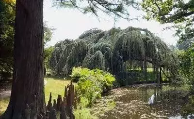 Die Zeder, der Trompeten Baum oder die Libanon Zeder, pflanzte François René wegen seiner Reise in den Orient. Genauer betrachtet ist es auch deshalb der Park eines Schriftstellers, weil Chateaubriand sich mit seinen Bäumen auf besondere Art verbunden fühlte. Diese Bäume sind einerseits Ausdruck seiner selbst, etwas, das in ihm selbst verwurzelt ist, denn diese Bäume wurzeln in seinen Erinnerungen, seinen Illusionen, wie er sagt, und andererseits existieren sie wirklich. Deshalb betrachtete er diese Bäume auch als eine Art Familie, als seine Kinder.